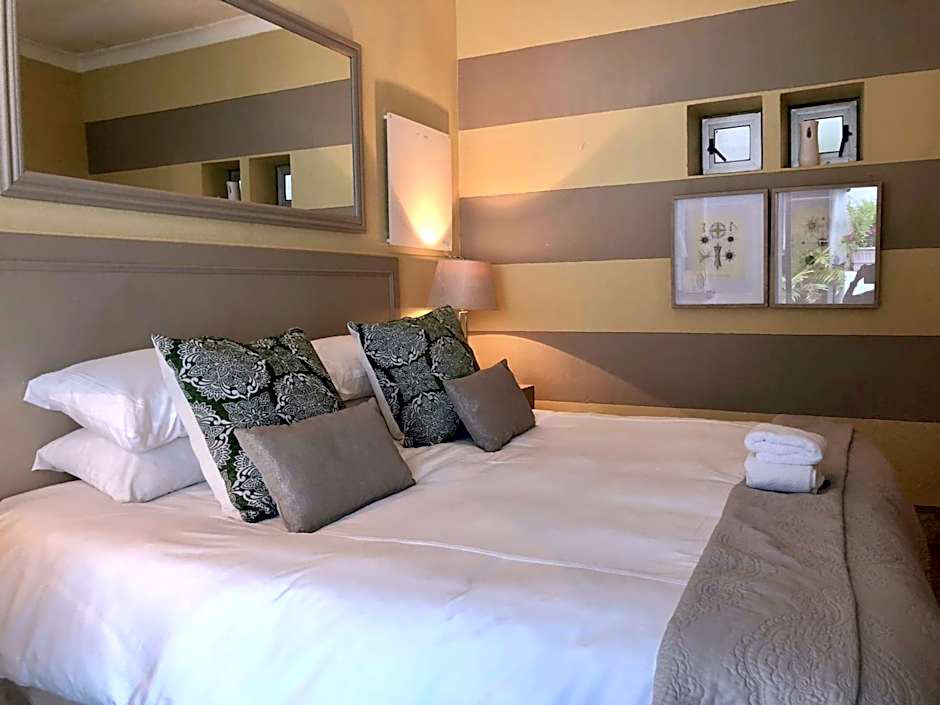 Suite located in a separate building, featuring a private entrance and wooden deck patio.